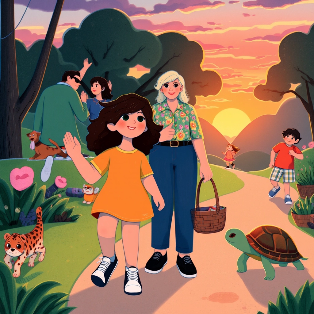 As they packed up to leave, [Mia](S3VJHYMS) waved goodbye to the ducks, her friend [Jake](CM9VJSCZ), and [Sammy the Turtle](PB9J5HDM). She couldn’t wait to come back and explore more of the park. 'Can we come again tomorrow, [Mom](B3NPSKCK)?' she asked. 'We’ll see!' [Mom](B3NPSKCK) said with a laugh.