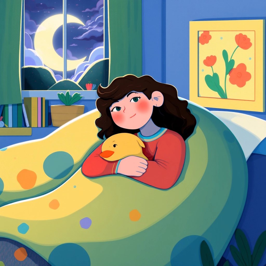 That night, as [Mia](S3VJHYMS) snuggled into bed, she closed her eyes and smiled. 'I love exploring the park,' she thought before drifting off to sleep, dreaming of tomorrow’s adventures.