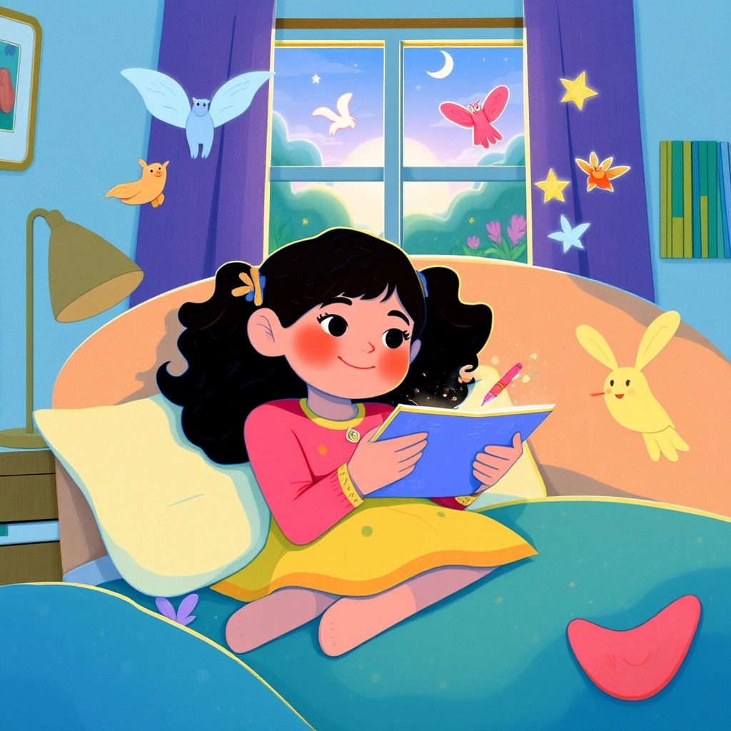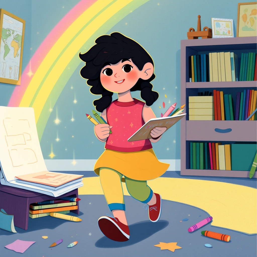 [Mia](S3TTPBKB) had a secret. Her sketchpad wasn’t just any sketchpad—it was magical! Every time she finished a drawing, the characters would come to life and play around her room!