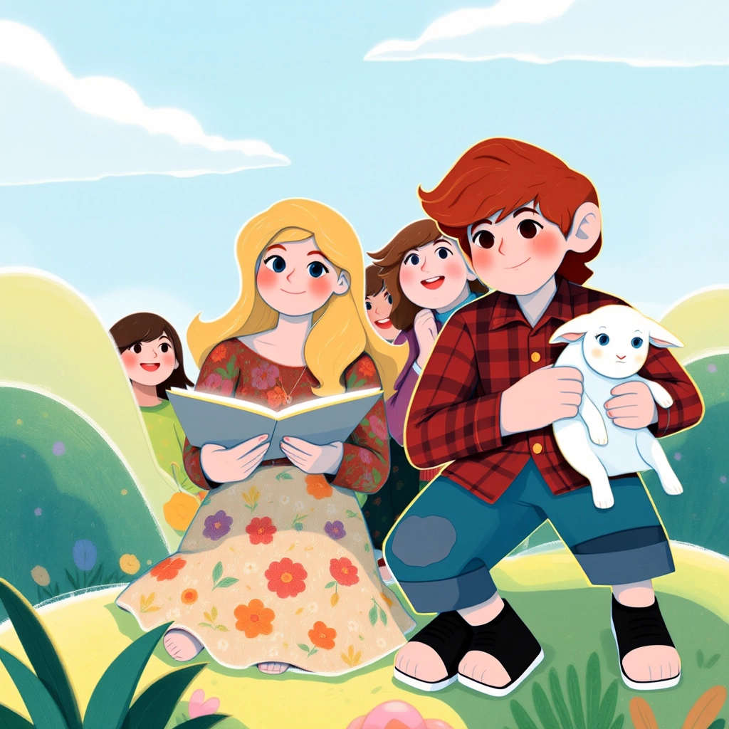 On a bright and sunny morning, five friends from the peaceful village of Harmony Valley decided to gather for a Bible reading at the beautiful meadow near the old oak tree.