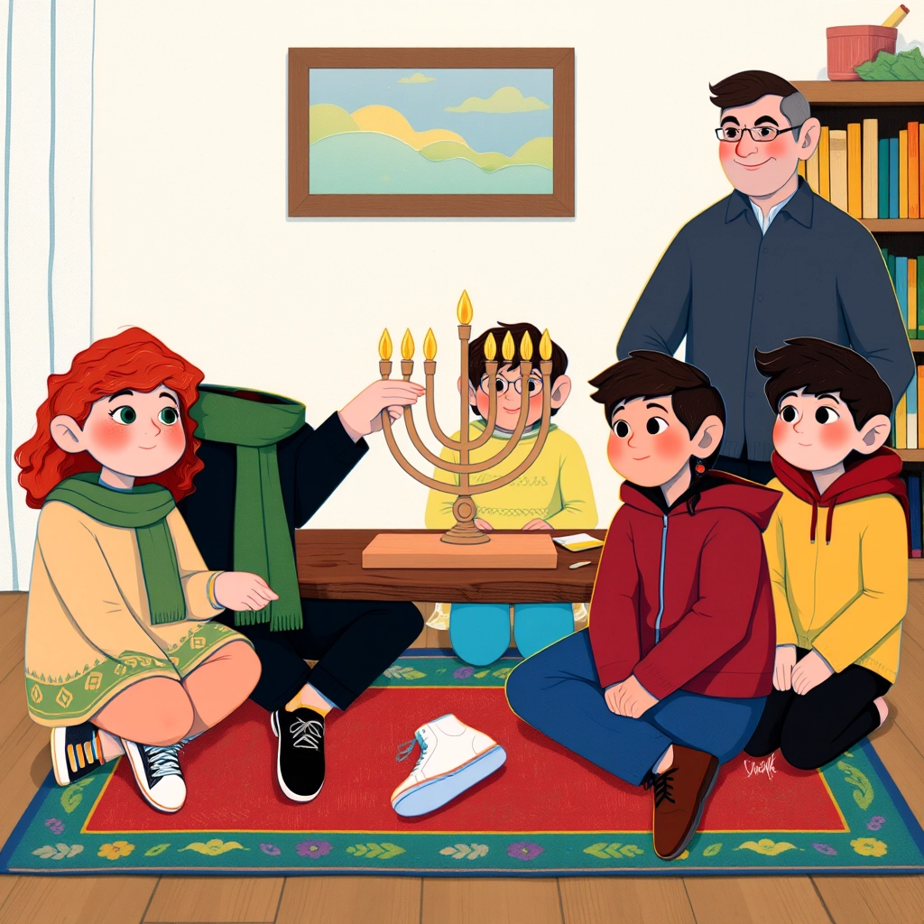 “That's so cool!” said [Liam](ZNQYYQWF), running his hands through his blond hair. "I didn’t know Hanukkah was about a miracle!" [Aisha](K7BVBZW4) nodded. “It’s like a way to always remember the good things, even when times are hard."