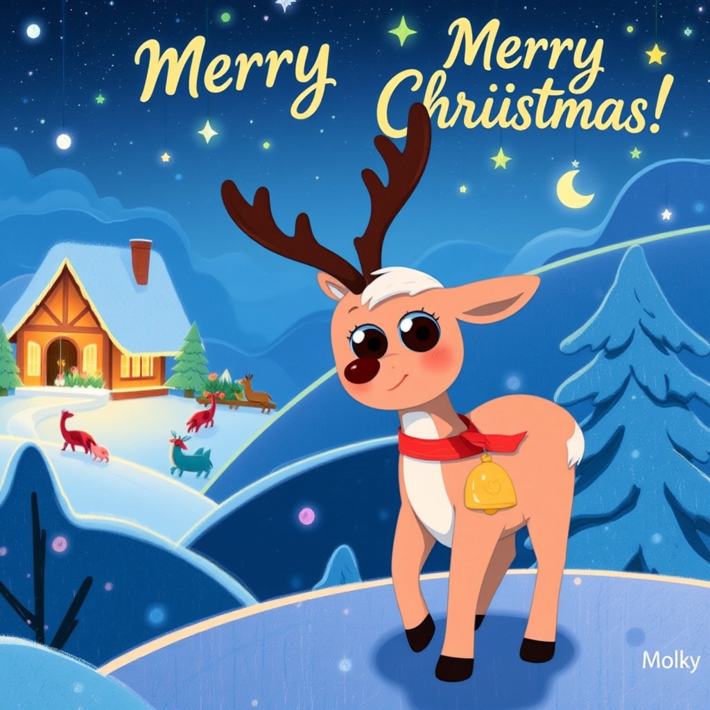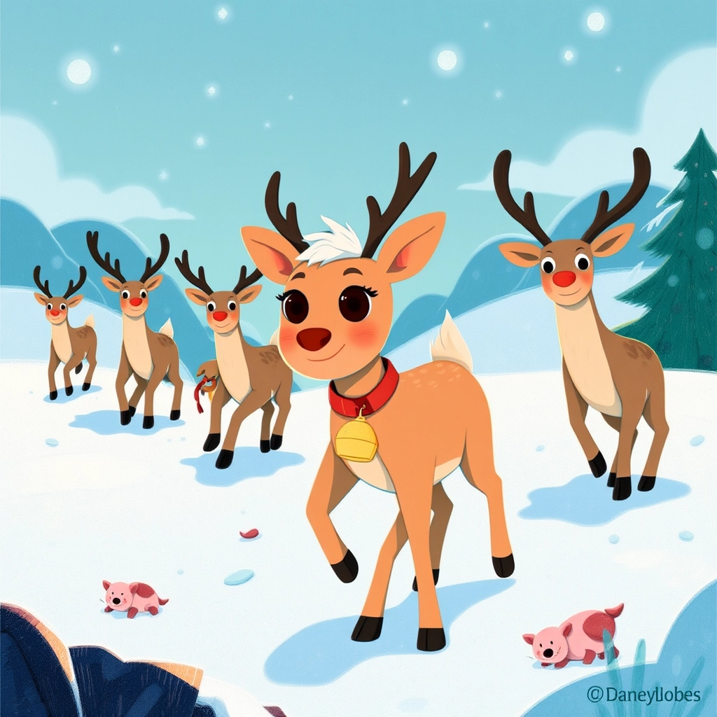 Meanwhile, [Molly](D2RFHQKQ) the reindeer practiced her flying with the others. She was the youngest and smallest of the team but had a sparkling bell on her collar that chimed with every leap.