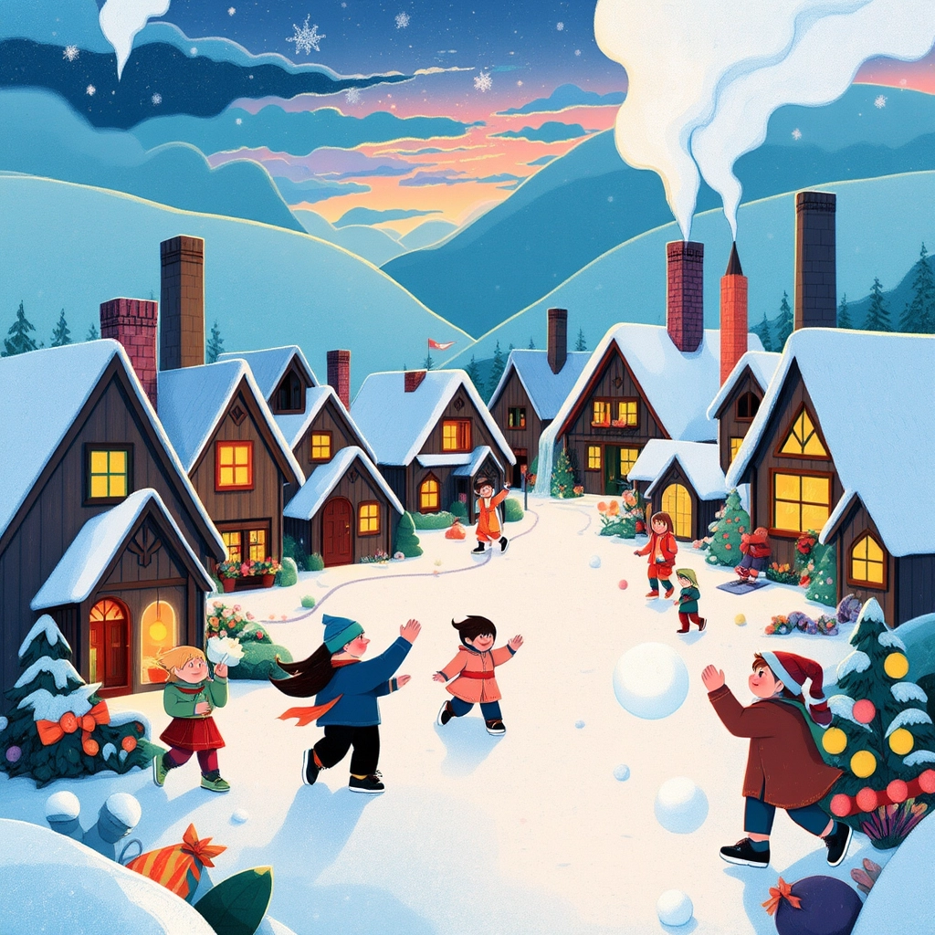 It was Christmas Eve, and the little snowy village of Northwood was buzzing with excitement. Joyful children laughed as they built snowmen in front of twinkling lights, while grown-ups hung wreaths on doors and baked delightful treats.
