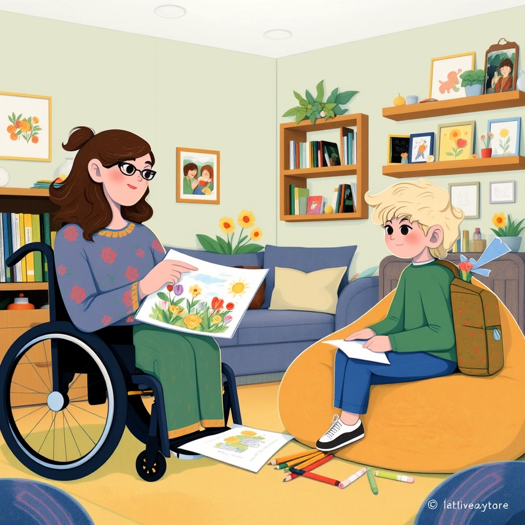 In a picturesque town surrounded by rolling hills lived a unique and vibrant family. The mother, [Grace](YXSSY44G), had a bright smile that lit up every room, though she used a wheelchair to move around. Her young son, [Leo](VCBPG7FM), was non-verbal but had a gift for communicating through gestures, drawings, and the glimmer in his eyes.