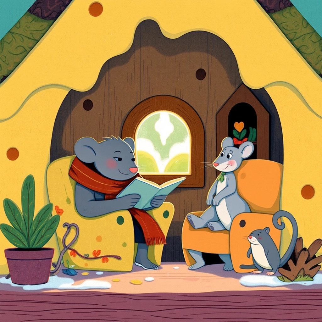 "Papa, why must we live in a cheese house?" [Bernadette](LNL4NWHZ) asked with her tiny nose wrinkled. "It doesn’t even smell nice to me!" [Bernie](DJGWJD29) chuckled and explained that it was warm, sturdy, and a family tradition.