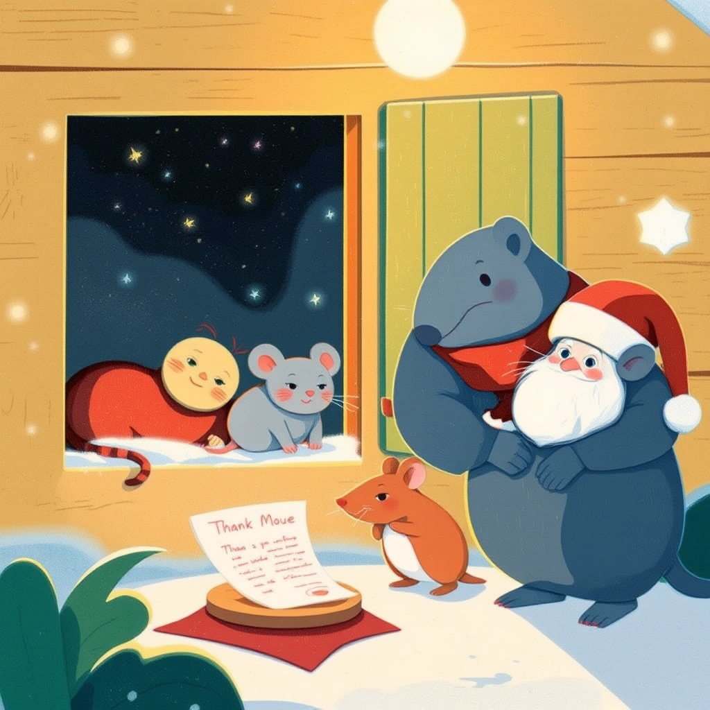 From that day on, a slice of cheese became their Christmas tradition. They even left a thank-you note for [Santa Mouse](MDCNS9WC), who always smiled when he returned.
