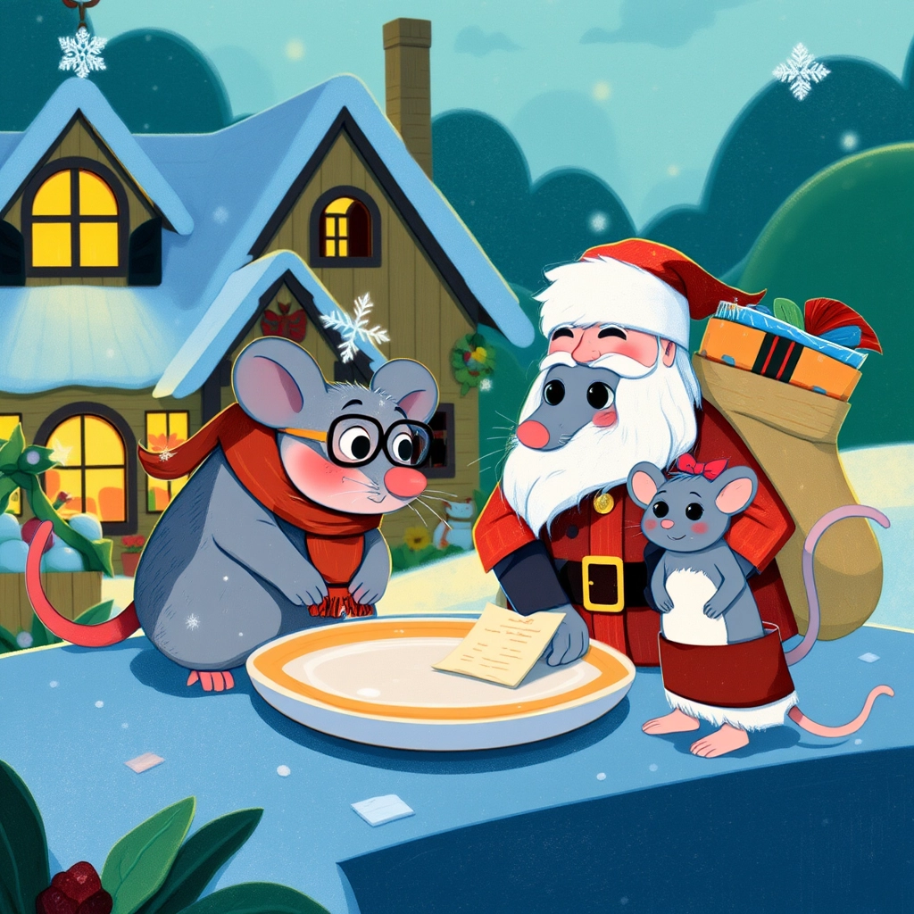 As the clock struck midnight, a jingling sound filled the house. Down the cheesy chimney slid [Santa Mouse](7YSJGXHV), carrying a sack of gifts.