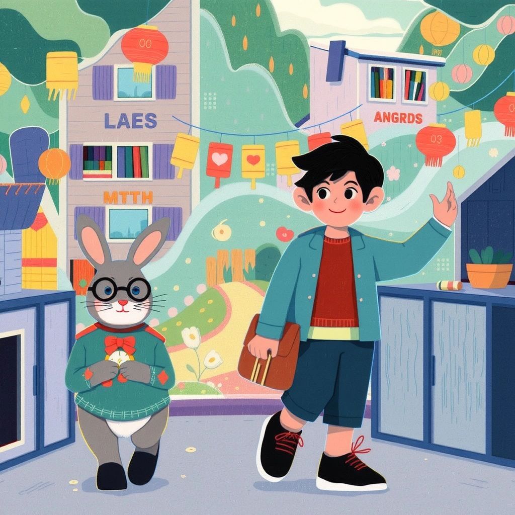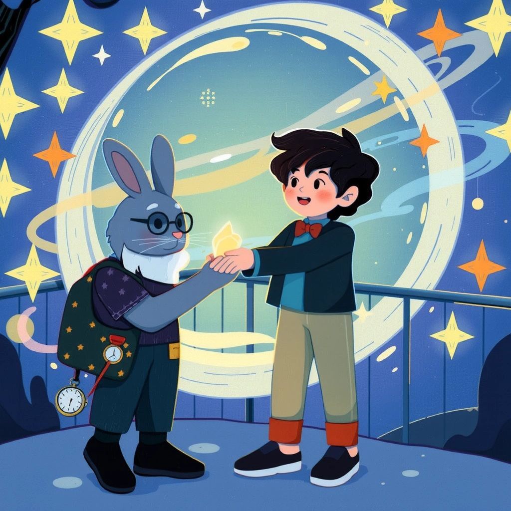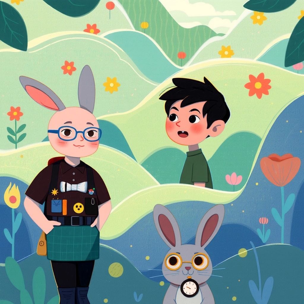 Excited, [Aamir](TF6N2HM9) reached out to touch the mirror. Instantly, he found himself in the world of talking animals, greeted by a wise, bowtie-wearing rabbit named [Mr. Thumpkin](ZGSZZSW3).