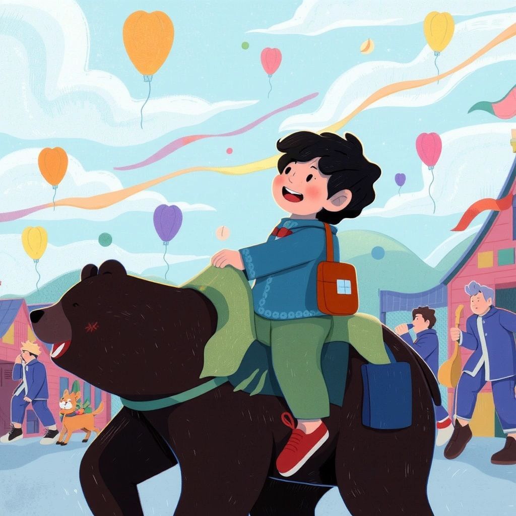 At the festival, [Aamir](TF6N2HM9) played games, tasted delicious treats, and even rode on the back of a friendly bear while watching a marvelous parade!