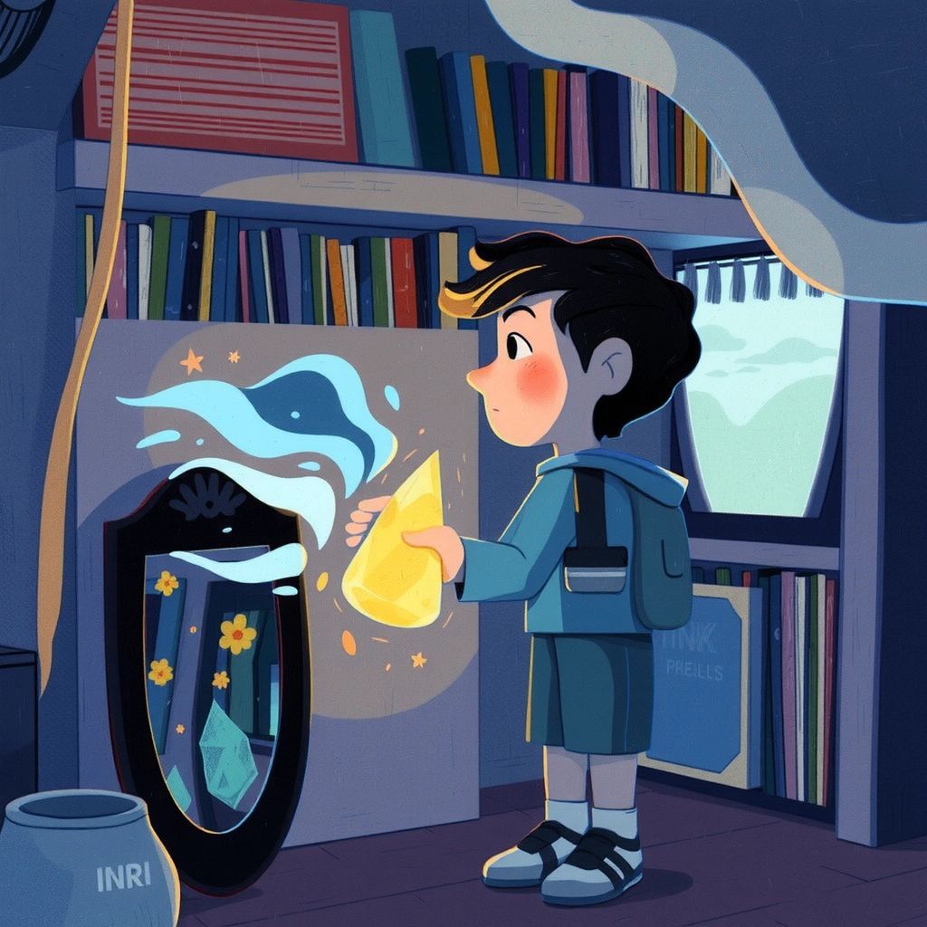 Back in the attic, [Aamir](TF6N2HM9) found himself holding the crystal—a magical reminder of his incredible journey. He knew he was always welcome in the world of the magic mirror.