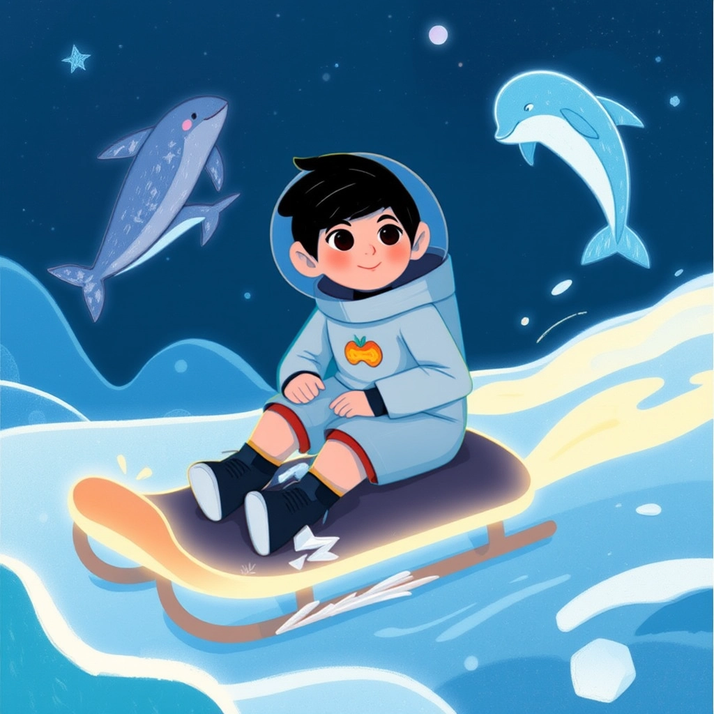 Soon, [Aayansh](FDRRBK4B) found himself near a sparkling blue planet, Neptune. It was so cold and windy! He put on a special warm suit and sailed on a frozen sea with magical ice dolphins leaping around him.