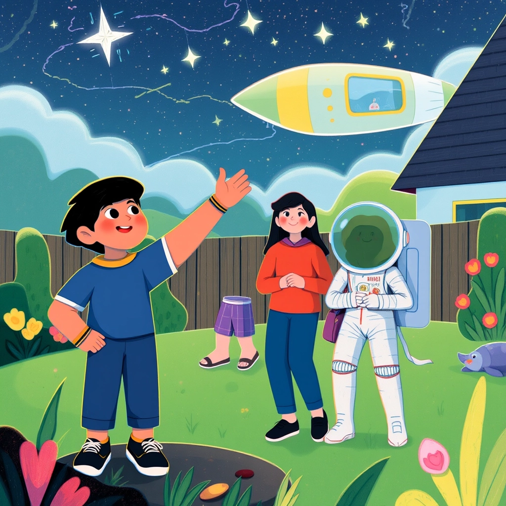 [Aayansh](FDRRBK4B) was a little boy with big dreams. He loved to gaze at the stars from his bedroom window and dream about visiting outer space. One day, he found a shiny spaceship in his backyard. What a surprise!