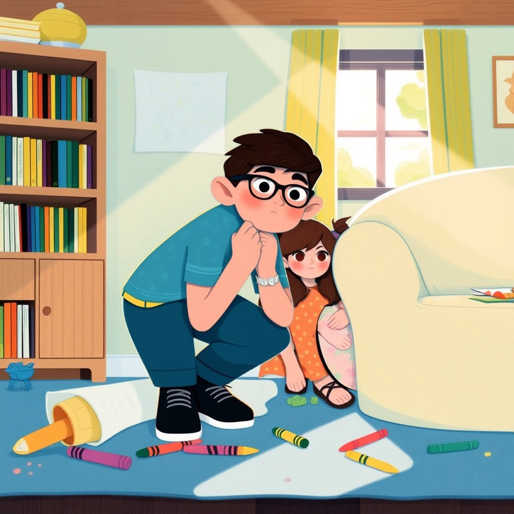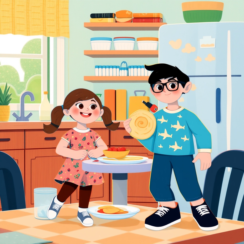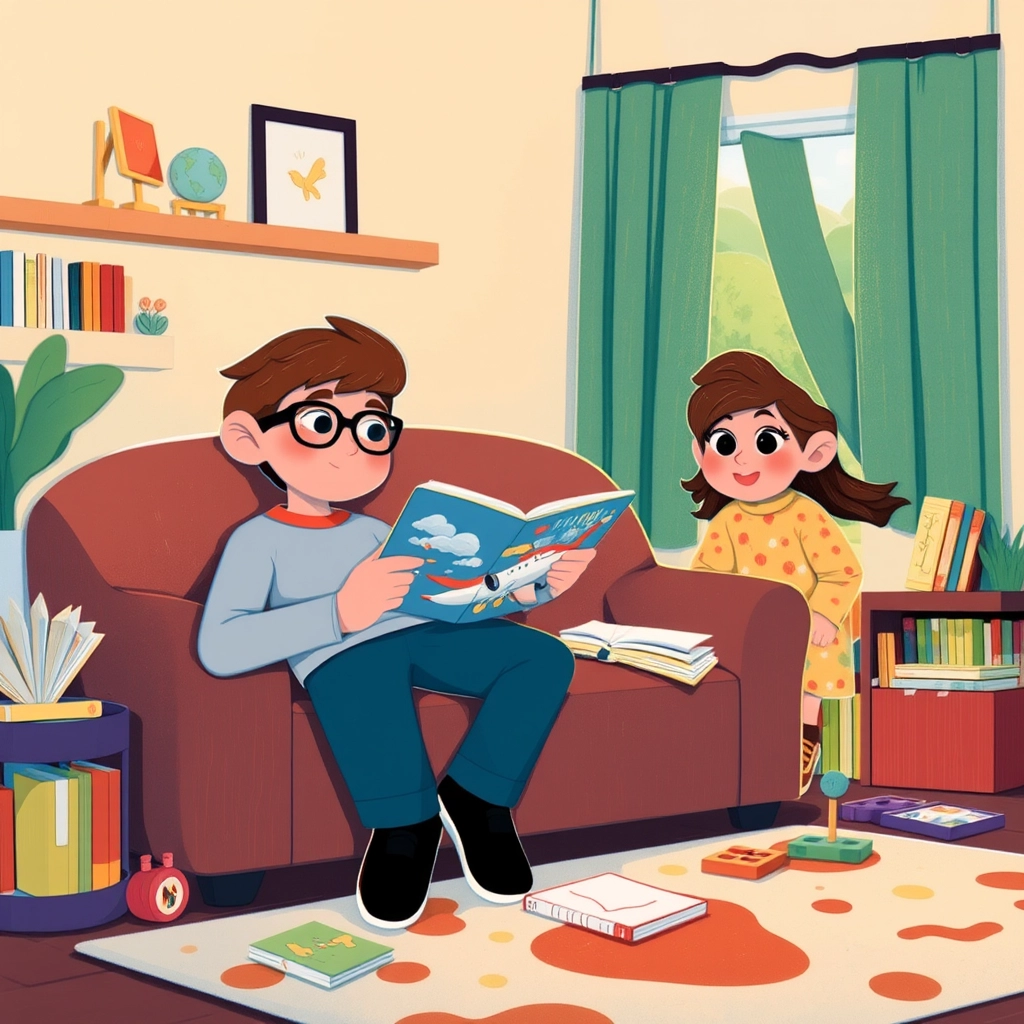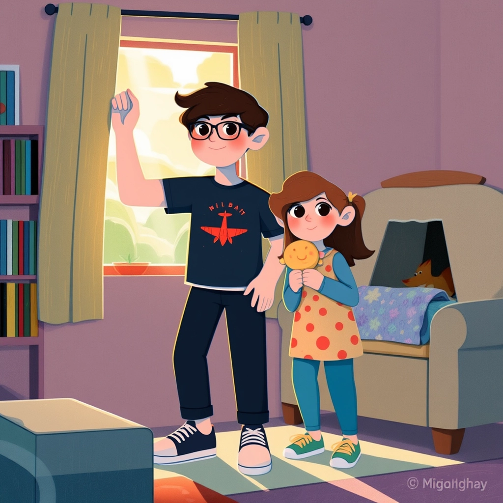 One sunny morning, [Adabjot](Q2QG3LGH) and [Kudrat](CY2WX3LW) woke up to find out that Mom and Dad were heading out for the day. [Adabjot](Q2QG3LGH), being the older brother, was in charge. 'Be good, [Kudrat](CY2WX3LW),' he said with a smile while adjusting his glasses. [Kudrat](CY2WX3LW) grinned mischievously.