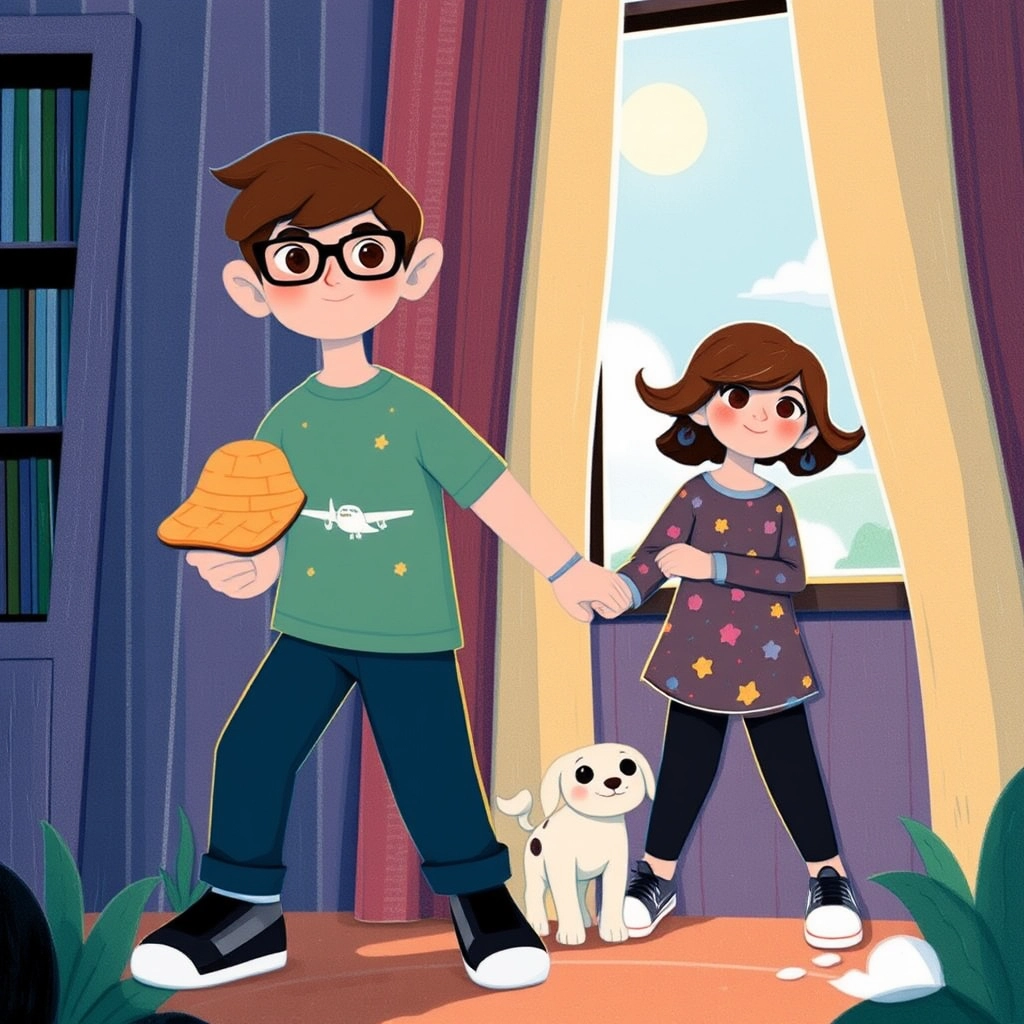 As the day ended, they tidied up, knowing Mom and Dad would be home soon. 'Today was the best adventure ever!' [Kudrat](CY2WX3LW) said, giving her brother a big hug. [Adabjot](Q2QG3LGH) smiled and ruffled her hair. 'You're the best co-pilot, [Kudrat](CY2WX3LW).'