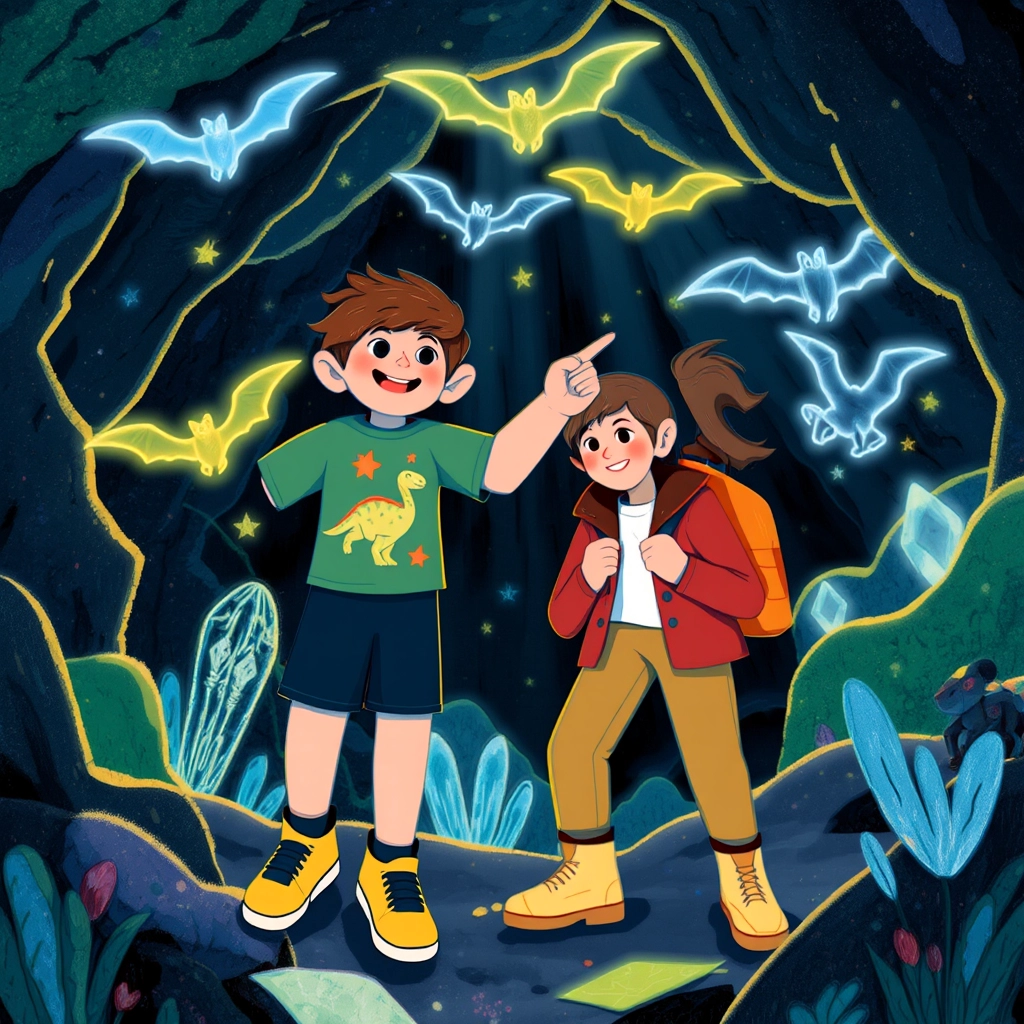 In the Twilight Caverns, they discovered glowing cave bats that used their chirps to draw pictures out of light on the cave walls.