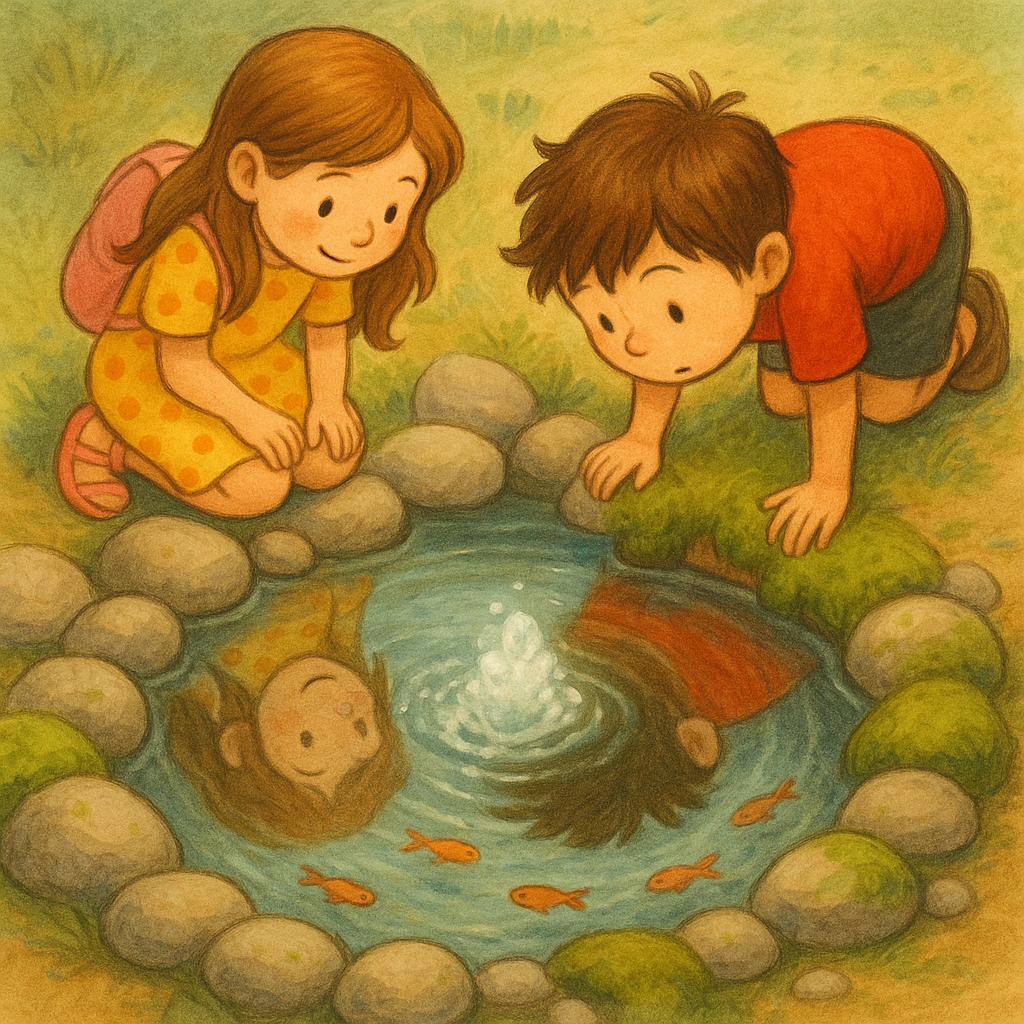 They discovered a bubbling spring that fed into the lake. The clear water was filled with tiny fish darting around, and [Greta](9TGJ4HMP) couldn't stop giggling as she watched them.