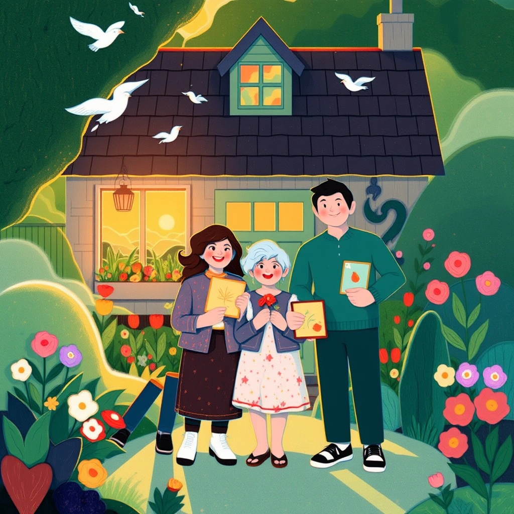 Once upon a time in the vibrant town of Quebec, there lived a cheerful family in a cozy house bordered by blooming flowers. The children—[Esther](NHRQX5JL), [Nathan](ZD7522QM), and [Sarah](D9PYY23S)—loved adventures and cherished their life with [Mom](4J9T256D) and [Dad](6KQZBF7C).