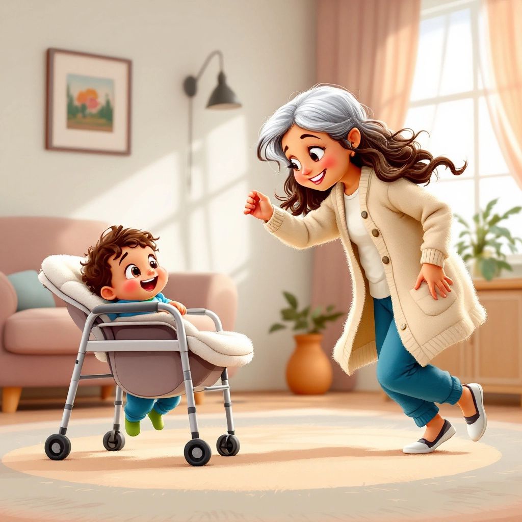 [Beau](6656TK5W) loved the story so much he wiggled in his bouncer, which made [Grandma](BWLFPKNW) chuckle. Her laughter was infectious, and soon [Beau](6656TK5W) joined in, filling the room with joy.