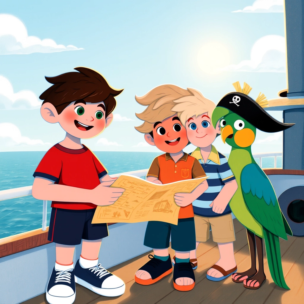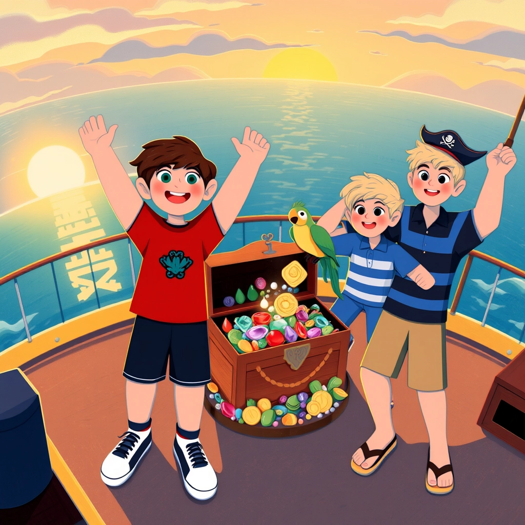 At the cruise party that evening, the boys shared their treasure hunt adventure with their parents, who were proud of their determination and teamwork.