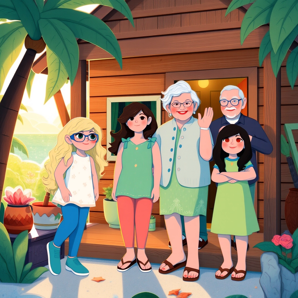 [Mika](ZNYCJT7H) and [Caitie](T6JBR49W) were so excited to visit [Grammy](G2RY3GGV) and [Gramps](4P6ZNGVX) by the ocean, where the blue waves seemed to stretch on forever, and magic was always in the air.