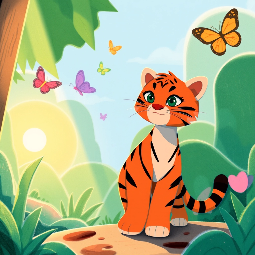 [Tina](7QXCP4M5) the tiger cub stretched her legs and flicked her striped tail. ‘I’ll sprint faster than anyone!’ she boasted.