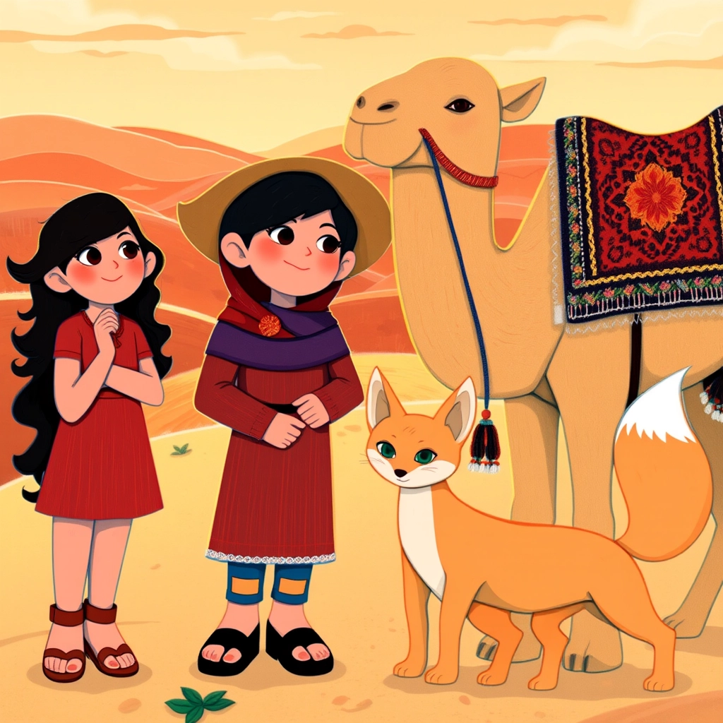 Today, [Amal](S74524Q2) and [Nabeel](C7ZTBTYX) were meeting their friend, [Basma](YCP22GVQ), the clever desert fox. [Basma](YCP22GVQ) had soft, sandy-colored fur and the largest, fluffiest tail [Amal](S74524Q2) had ever seen. She pranced lightly on the hot sand as she greeted [Amal](S74524Q2) with a cheerful yip.