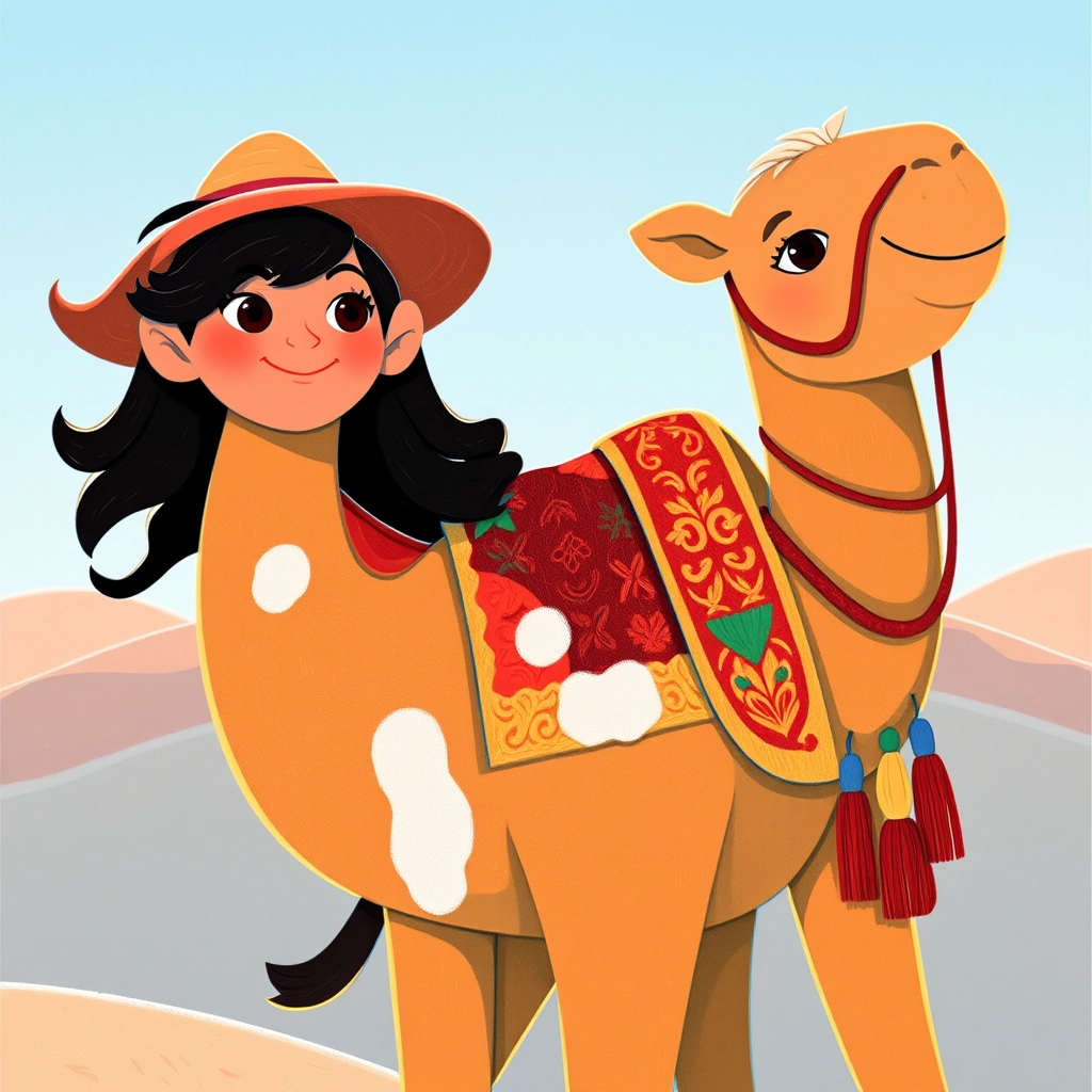 [Amal](S74524Q2) had a special companion—a quirky camel named [Nabeel](C7ZTBTYX). He was no ordinary camel; his fur was light caramel with striking white patches. [Nabeel](C7ZTBTYX) wore a colorful, embroidered saddle and loved to wink mischievously!