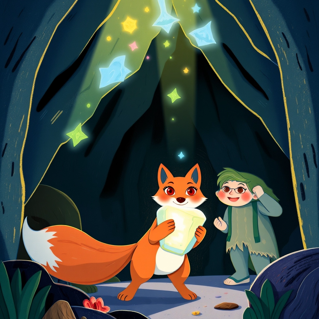 The glowing map pointed them towards the Hidden Crystal Caverns, which were said to contain treasures that could protect the grove forever.