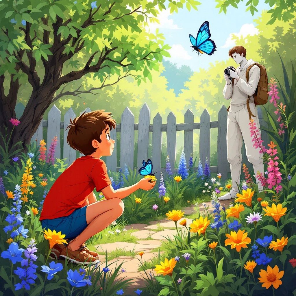 They came across an enchanting garden filled with wildflowers and butterflies fluttering about. [Emory](LKHLQJZS) was thrilled to spot a rare blue butterfly resting on a bright yellow flower.