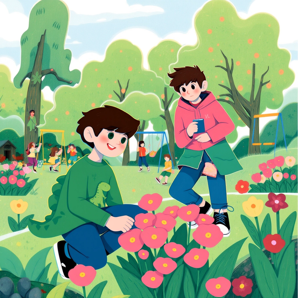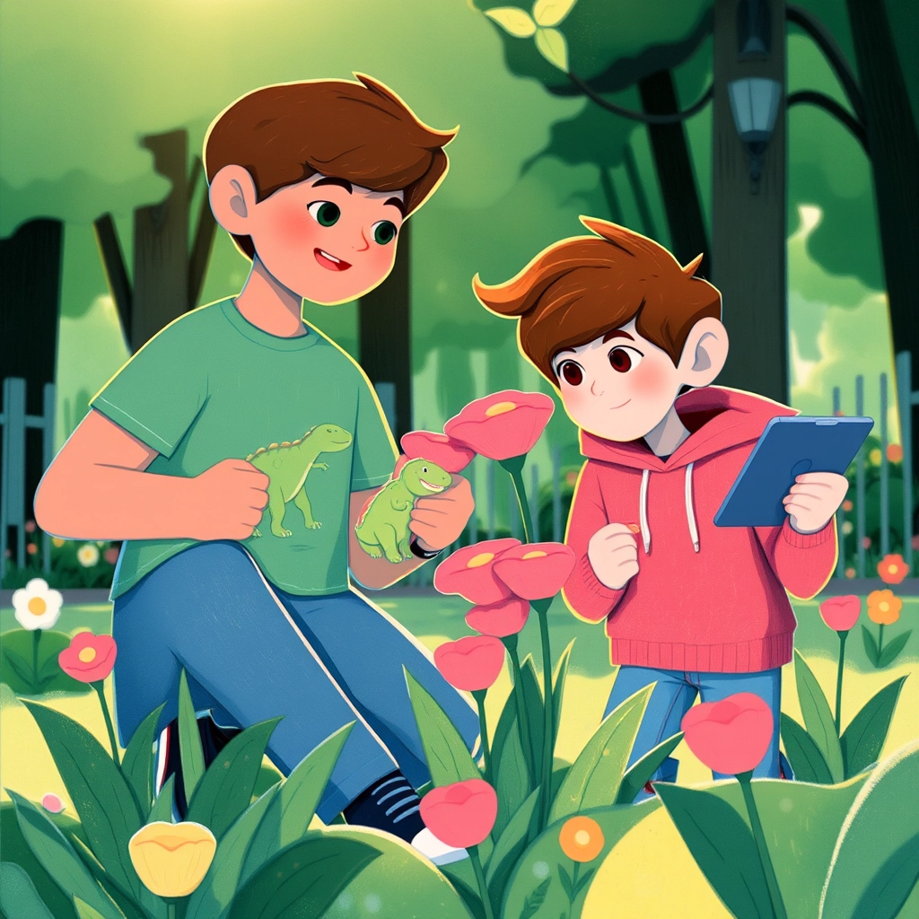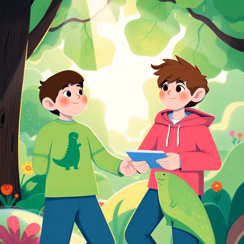 The boys looked at each other with joy in their eyes. "Together, we can go on any adventure!" [Rory](YS6J9FF5) said. [Brooklyn](B3SD4H5C) nodded, and they both laughed, ready to dream up something new.