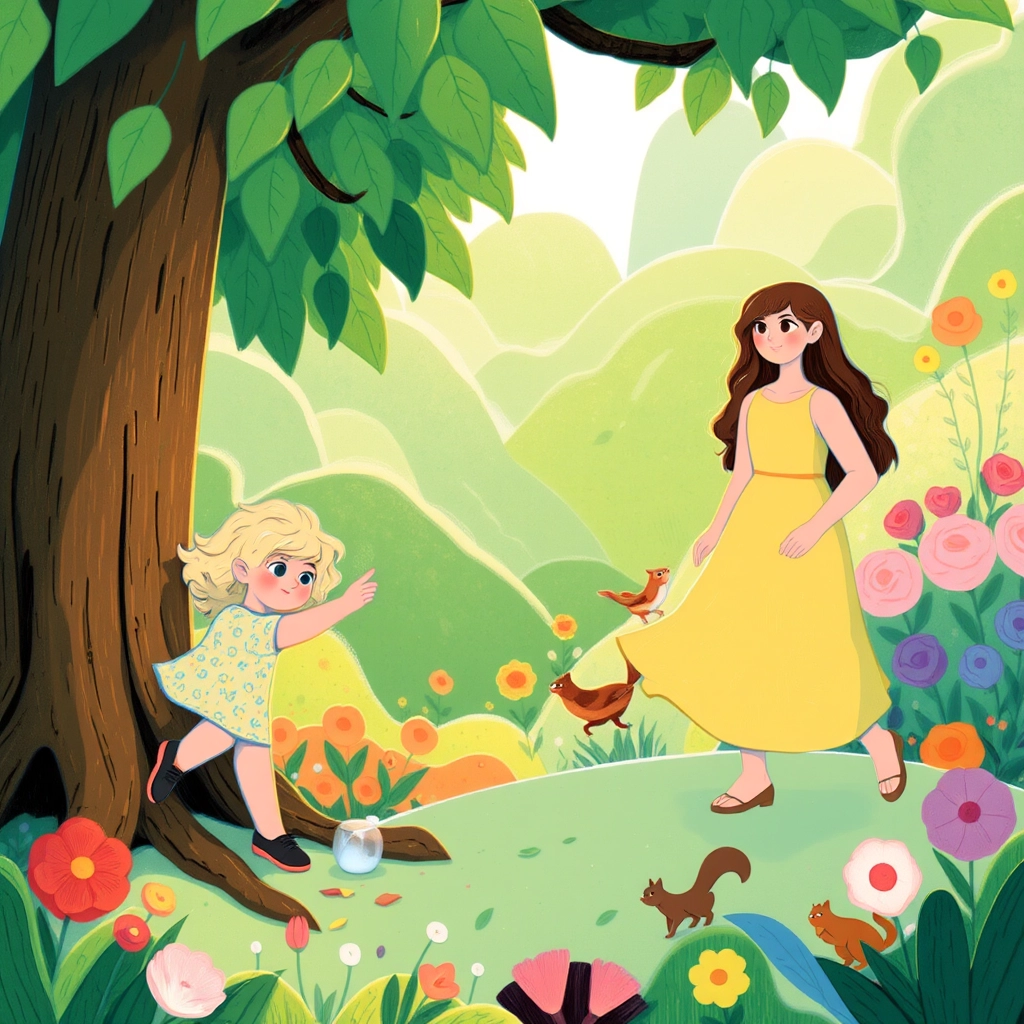 It was a beautiful sunny day, and [Maria](RF2Q3JQQ) and her little sister [Aria](YZSR4RGK) were playing in their garden. [Nanny](LBZSYPYD) sat on the bench, smiling proudly at her two favorite girls.