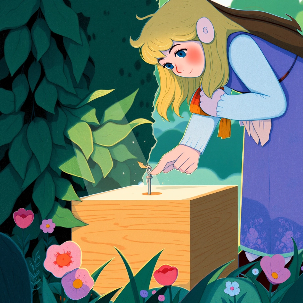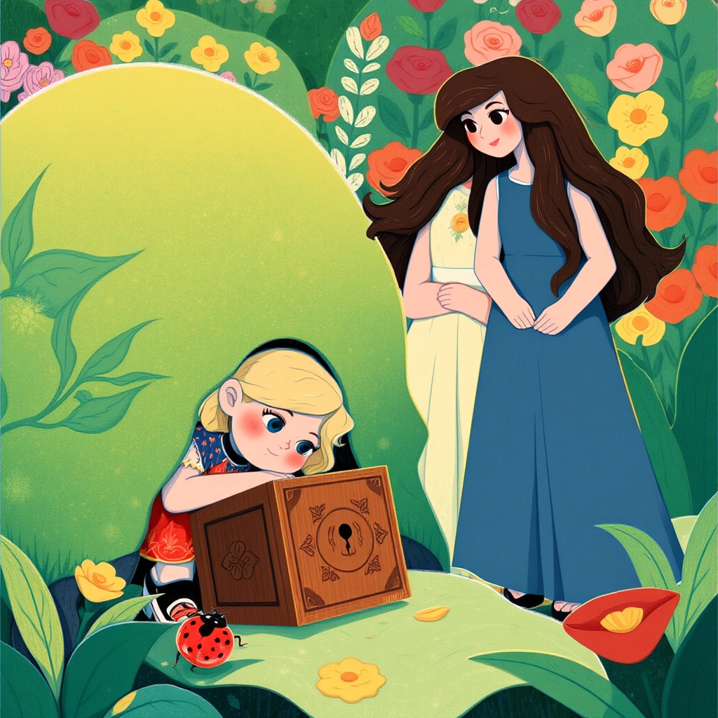 They searched all around the garden until [Aria](YZSR4RGK) spotted an old wooden box under the bush.