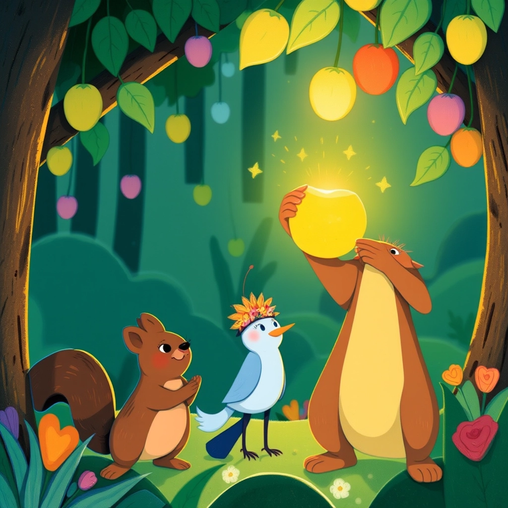 When it was time to go, the friends took one glowing fruit each to remember their adventure.