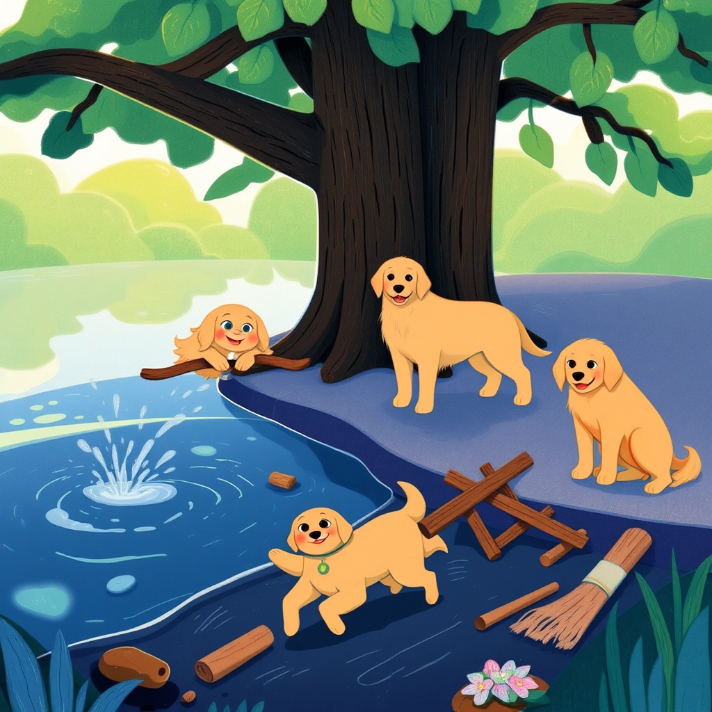 Every morning, [Bella](4BPVFK5L) and her parents start their day with a walk to the river, where [Bella](4BPVFK5L) loves to splash in the water while [Daisy](3JN4SQDC) and [Max](JHWXSFDS) watch with proud smiles.
