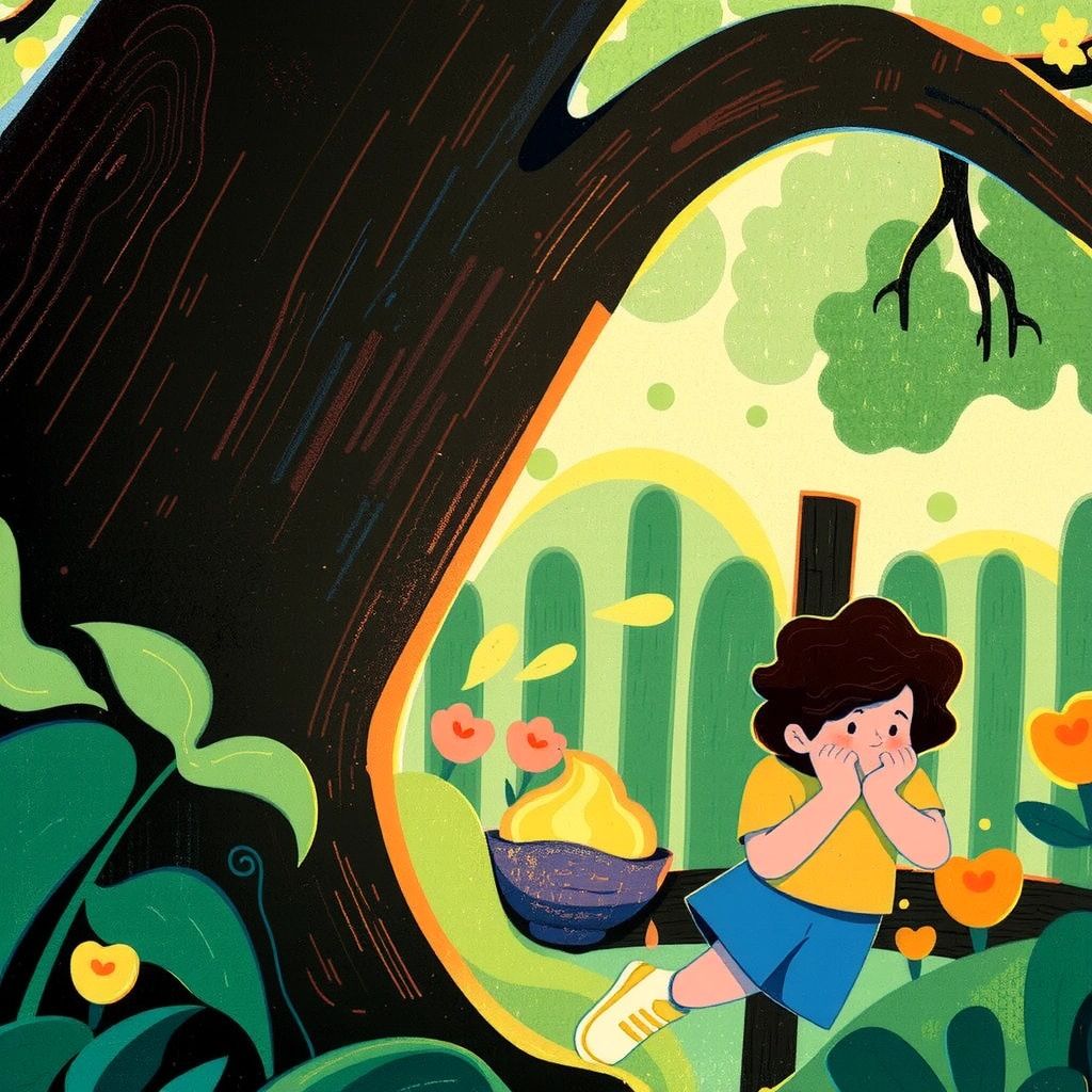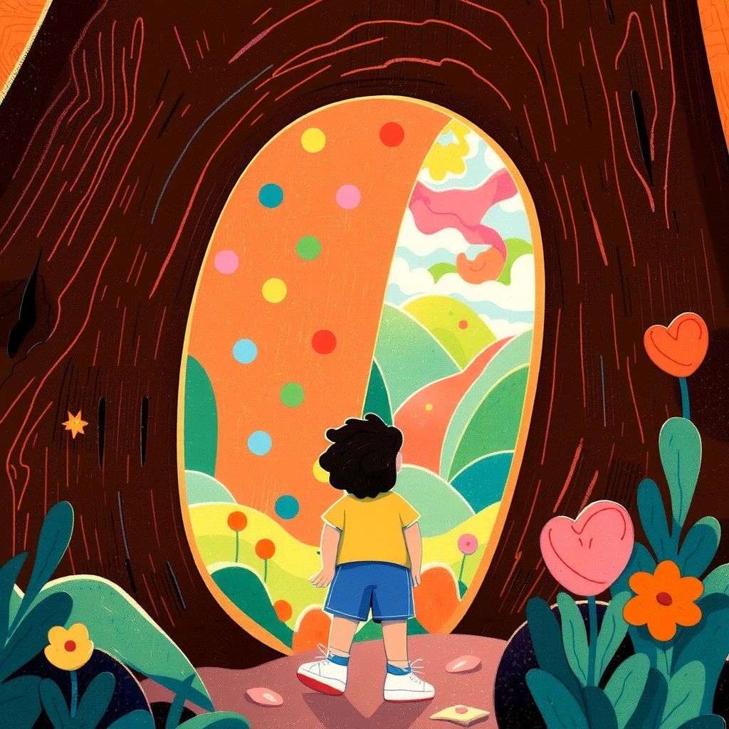 To [Ahmet](D59WG7TZ)’s surprise, he touched a giant cupcake door hidden in the tree. With a slight push, it opened, revealing a magical land where the ground was made of gingerbread!