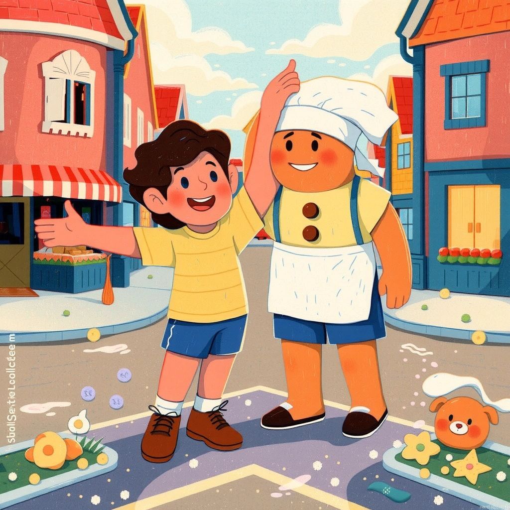 As he wandered, [Ahmet](D59WG7TZ) met [Muffin the Baker](TVKB3FWB), a jolly gingerbread man wearing a floury apron and a friendly smile. Muffin offered to guide [Ahmet](D59WG7TZ) through Sweetville, the land of treats.