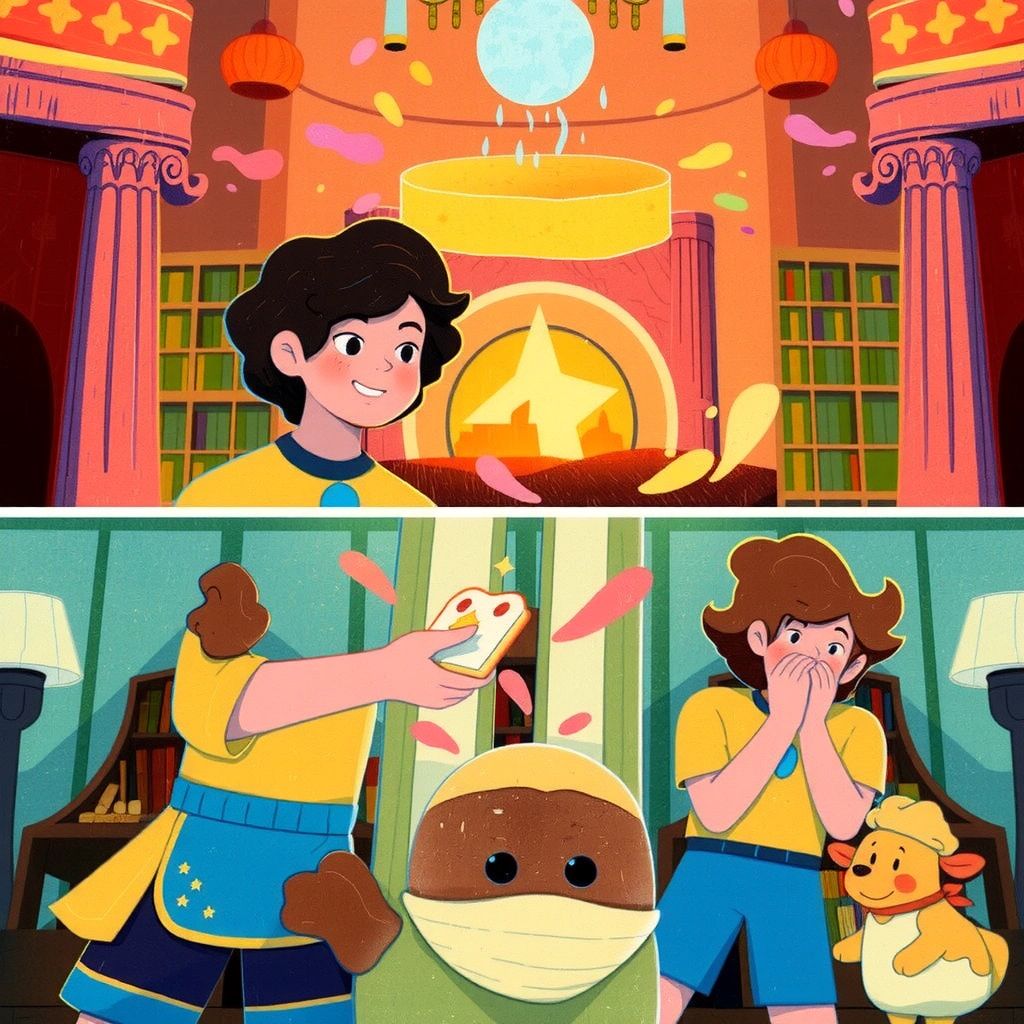 Realizing it was time to head home, Muffin gave [Ahmet](D59WG7TZ) a magical cookie as a parting gift. With a hug, Muffin promised [Ahmet](D59WG7TZ) could return whenever he wished.