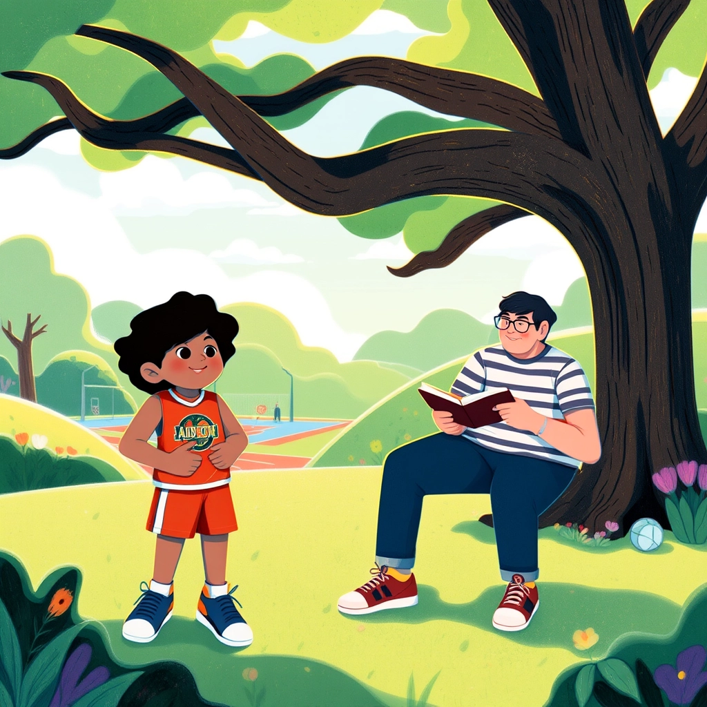 [Aidon](2J4KQ5NG)’s favorite phrase was, '[Dad](HY7S7PJR)a, can we play ball?' One sunny afternoon, he asked his dad, who was busy reading a book under a tree nearby. [Aidon](2J4KQ5NG) didn’t want to wait!