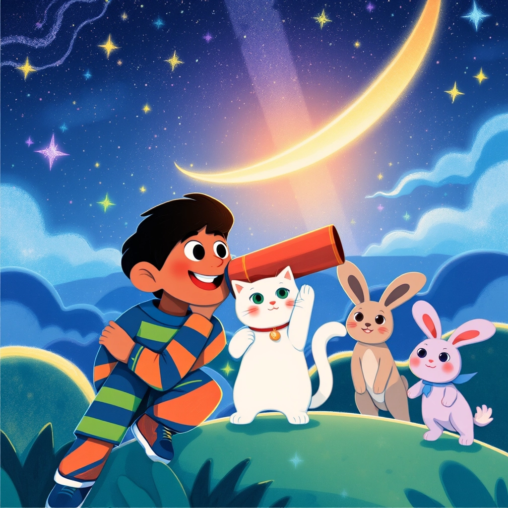 After breakfast, [Akash](D9H2LNTL) opened the gift to find a magical telescope from Grandpa.