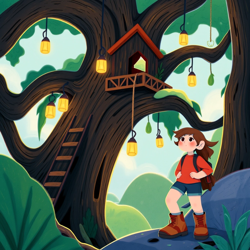 At the end of the trail, they discovered a hidden treehouse high in the tallest tree, with a rope ladder hanging down.
