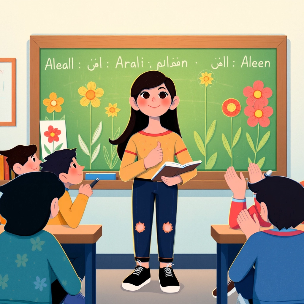 [Aleen](T3MDRFT2) smiled. She realized the garden was a special place where both Arabic and English thrived together—just like her! She returned home with a story to share.