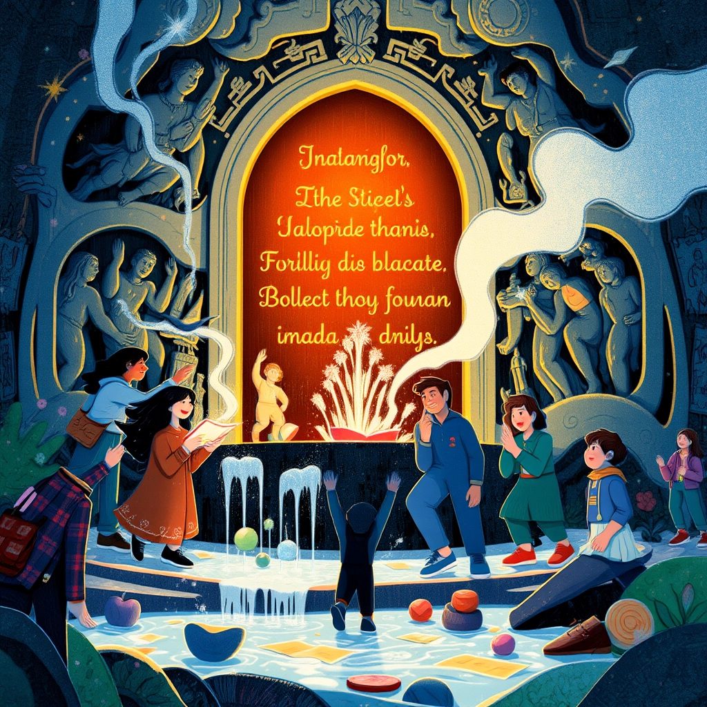 [Aleen](T3MDRFT2) followed the golden path until she discovered an enchanted fountain. The fountain had carvings of stories in both Arabic and English!