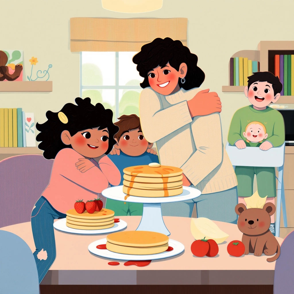 As the smell of fresh pancakes filled the air, [Alira](N2CQZBG5) clapped her hands. 'These are the best, Mama! Thank you so much!' [Alexis](BBB43CT6) hugged her little girl, grateful for her big heart and sweet imagination.
