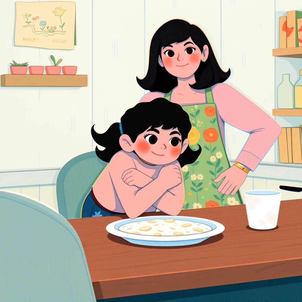 One morning, [Alexis](BBB43CT6) decided to change the breakfast routine. She thought about trying something quicker—maybe oatmeal or muffins? But when she placed the new breakfast in front of [Alira](N2CQZBG5), the little girl hesitated.