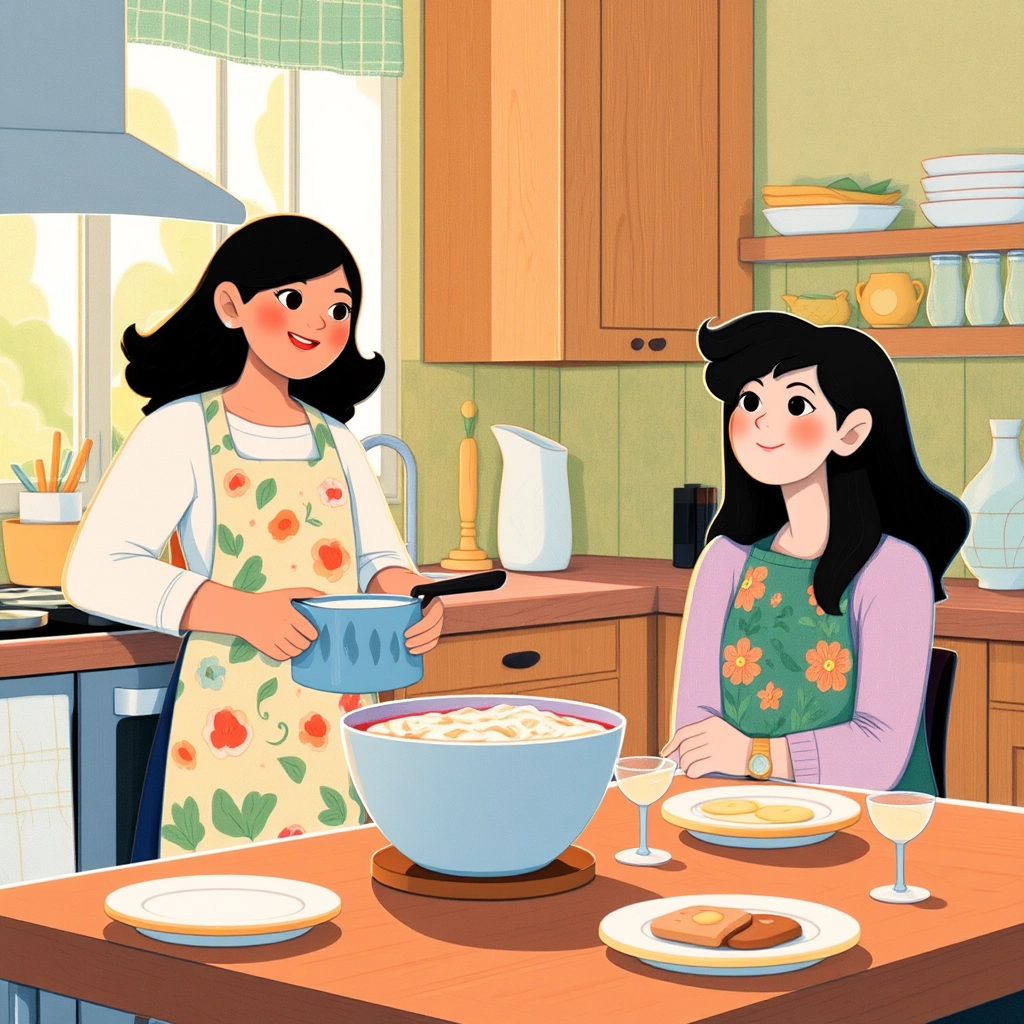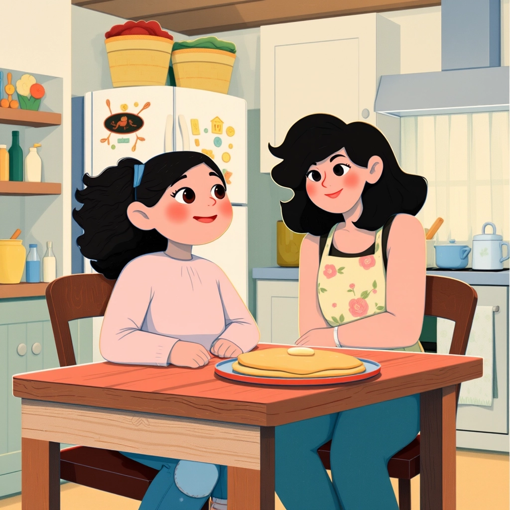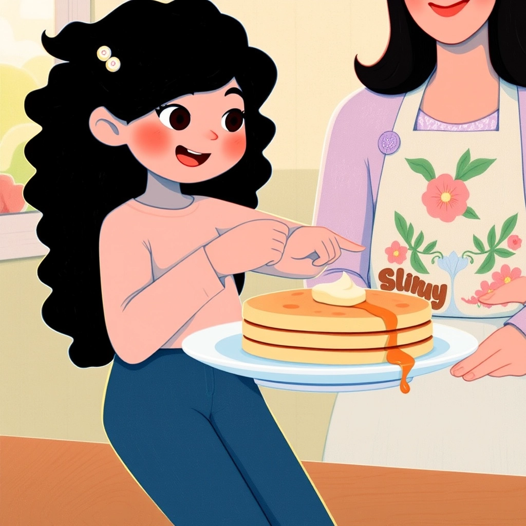 'Can you make me pancakes again, Mama? Pretty please?' [Alira](N2CQZBG5) asked sweetly. 'They’re my favorite because you make them just for me, with so much care!' [Alexis](BBB43CT6) couldn’t resist her little girl’s request.