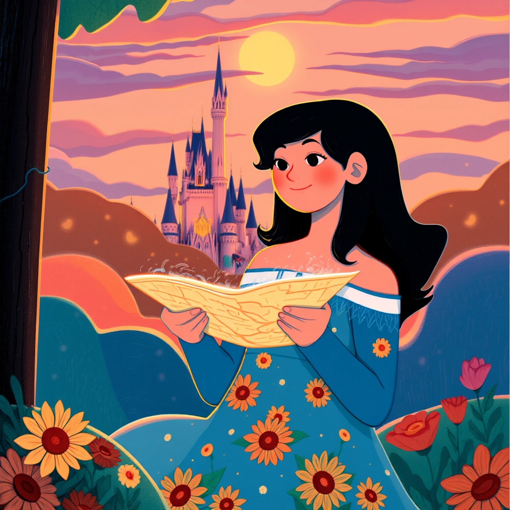 As the sun began to set, [Alivia](SG4SSQSQ)’s magical map sparkled to lead her to the fireworks show.