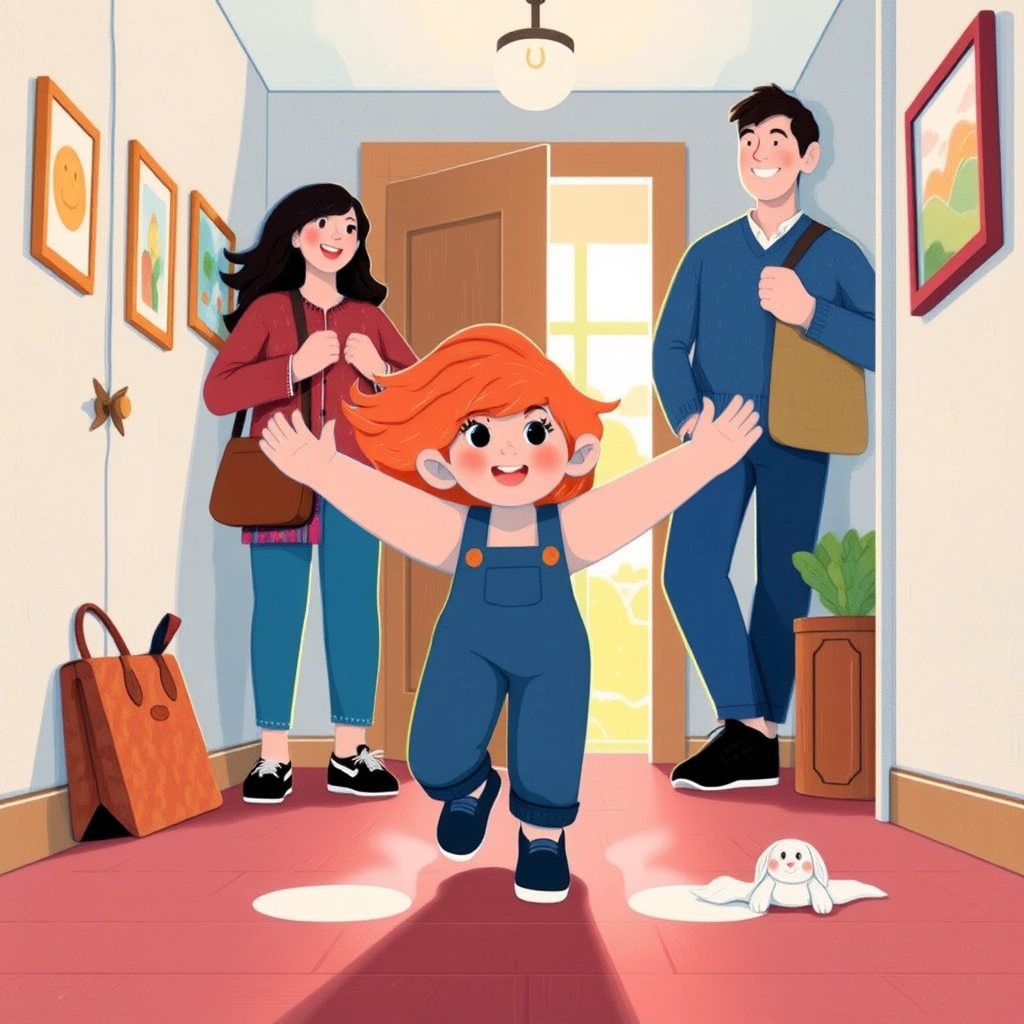 Finally, after what felt like forever, [Amelia](PRND7THF) heard the front door open. It was her Mom and Dad! She ran to them as fast as her little legs could carry her, her heart bursting with joy.