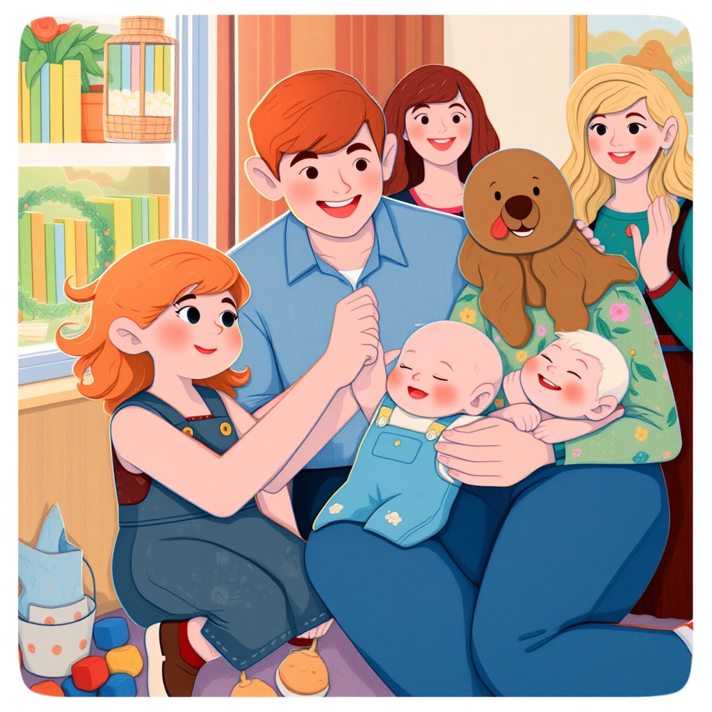 [Amelia](PRND7THF) looked at her new baby brother and smiled. [Clark](RBQY3DB4) wiggled his tiny fingers, and [Amelia](PRND7THF) giggled. She realized she had missed her parents because they were giving her the best surprise ever—a new friend and sibling to love forever.
