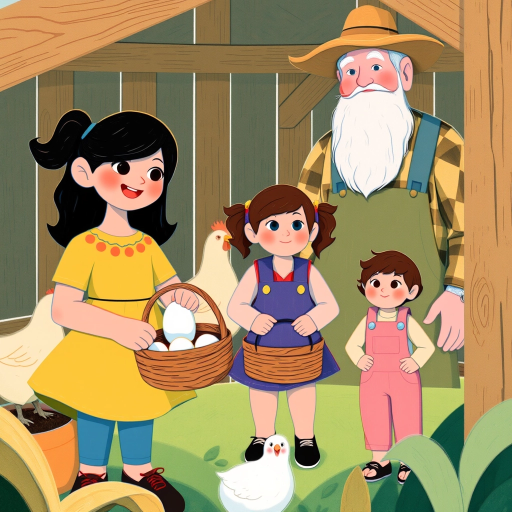 At the end of the day, the sisters collected eggs from the coop. 'These eggs will make a delicious breakfast tomorrow!' [Uncle Ted](KZ3W7PSK) said with a wink.