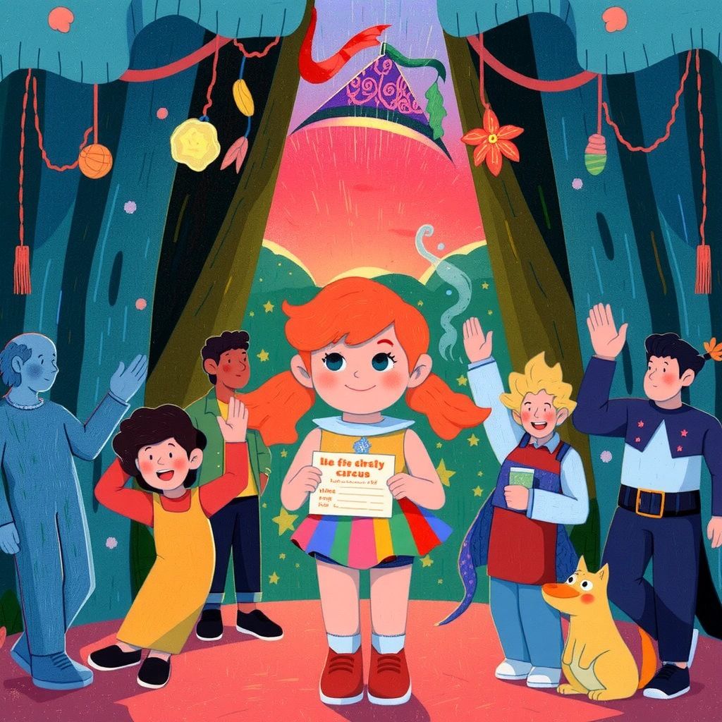 Once upon a time, in the bustling town of Whimsyville, lived a curious and adventurous young girl named [Amye](CG73ZV5S). One day, she found a mysterious letter in her mailbox, inviting her to a magical circus that only appeared once every hundred years!